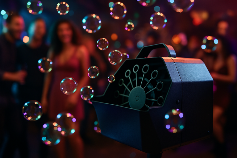 Die Seifenblasenmaschine zaubert magische Momente auf jedes Event. Ideal für Kinderfeste, Hochzeiten oder Outdoor-Partys – sorgt für spielerischen Spaß und unvergessliche Effekte. Einfach zu bedienen, dekorativ und ein Highlight für Gäste jeden Alters.