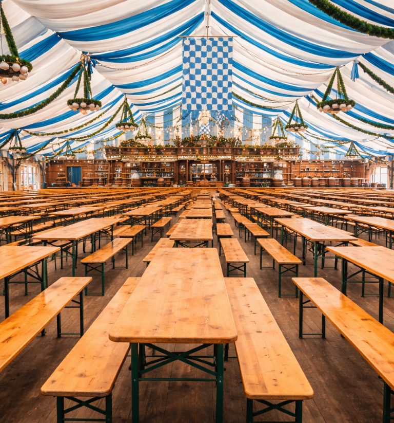 - Klassische Bierzeltgarnitur bestehend aus Tisch und zwei Bänken